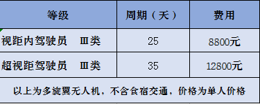 以多旋翼机长驾驶员培训为例,学员需要交纳8800元的费用,即可进行模拟飞行,飞行器拆装、维护、维修、保养,起飞与降落,本场带飞等多个维度45个周期的实践课程和理论课程的培训,并经过最终理论和实操考试,获取自己的驾驶员合格证。